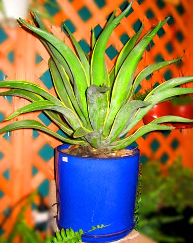 蓝色釉盆,与龙舌兰放射状的太阳光芒形态搭配,带有地中海的气息