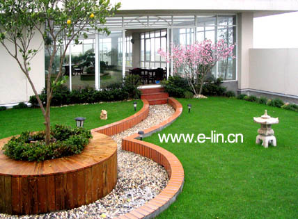 设计面积:300平米 工程周期:30天 硬件设施:德国GARDENA自动定时喷灌&滴灌系统 杰友升太阳能草坪光源 芬兰防腐木 化境中空树脂假山水景 设计思路:设计中充分运用原有结构,组合搭建尖顶阳光房,并以轻质土和陶粒透水层来降低楼板载重与防水负荷,用观花,观果等小型苗木营造花园氛围,满足抗风,采光,补水,保湿,降噪等多方面技术要求.